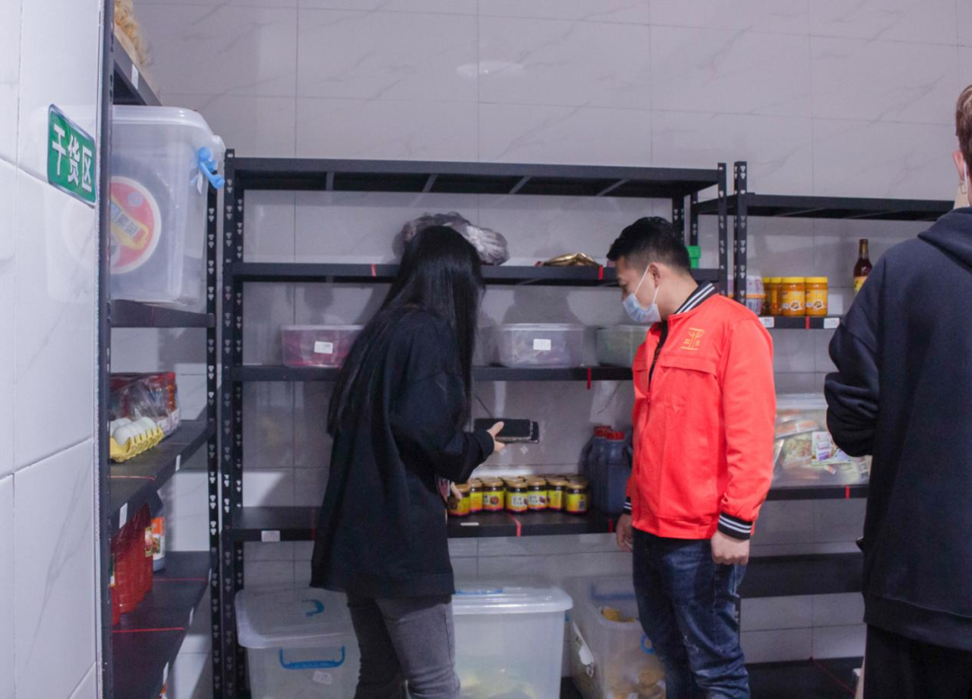 食堂的后厨情况,冰箱的卫生是重中之重,卫生达标的冰箱才能放进清洗完密封完整的食材。工作人员介绍完后,学生代表检查了冰箱的卫生情况,食材是否密封完整等。