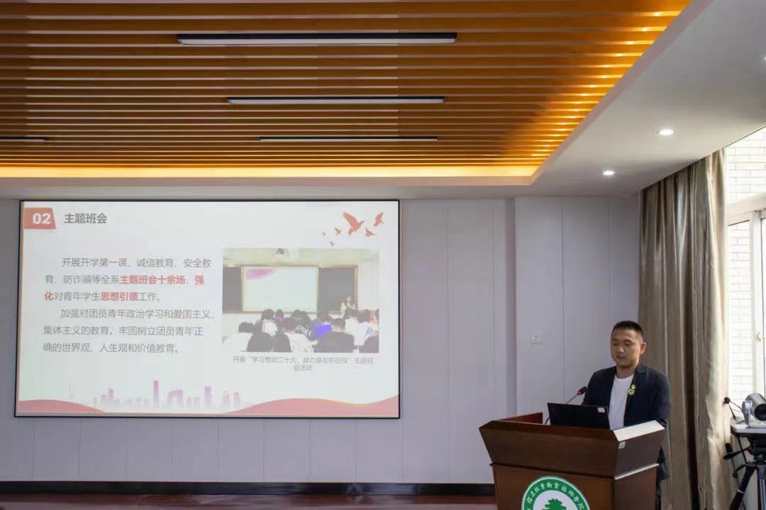 为总结工作,交流经验,凝练团学工作特色,深入实施“提高效率、提升效能、提增效益”行动,着力提升团的引领力、组织力、服务力和大局贡献度,以实际行动践行党的二十大精神,以优异成绩庆祝我院建校70周年,2023年4月26日,院团委在江南校区行政楼六楼会议室组织召开一年一度“一系一特,一团一品”迎五四团学特色工作汇报会,院党委副书记严绍裕,学生工作部、团委等部门负责人,各系党总支书记、副书记,各系团总支书记及团员青年代表近100人出席会议。会议由院团委副书记雷栩艺主持。