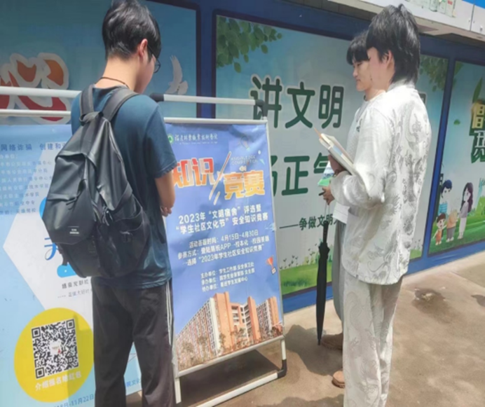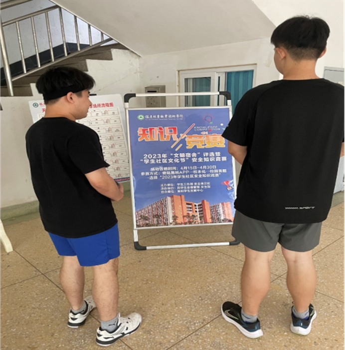 为了深入学习党的二十大精神,礼赞建校七十载,树牢总体国家安全观,感悟新时代国家安全成就,营造良好氛围,提高学生安全意识, 普及宿舍安全知识。防范宿舍安全事故的发生,营造一个安全、文明、舒适的宿舍环境。院宿舍管理委员会于4月15日至30日开展“学生社区文化节”安全知识竞赛答题活动,以赛促学,以学促行,让同学们在学习中掌握本领。