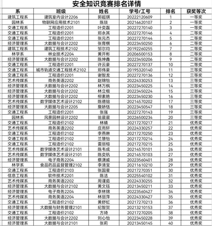 此次竞赛,根据成绩、答题速度,选拔出一等奖3名、二等奖7名、三等奖10名、优秀奖20名,现将获奖名单公布如下: