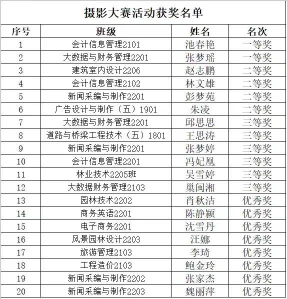 ▲春日摄影大赛获奖名单