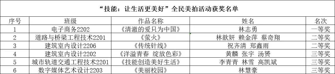▲“技能:让生活更美好”全民美拍活动获奖名单