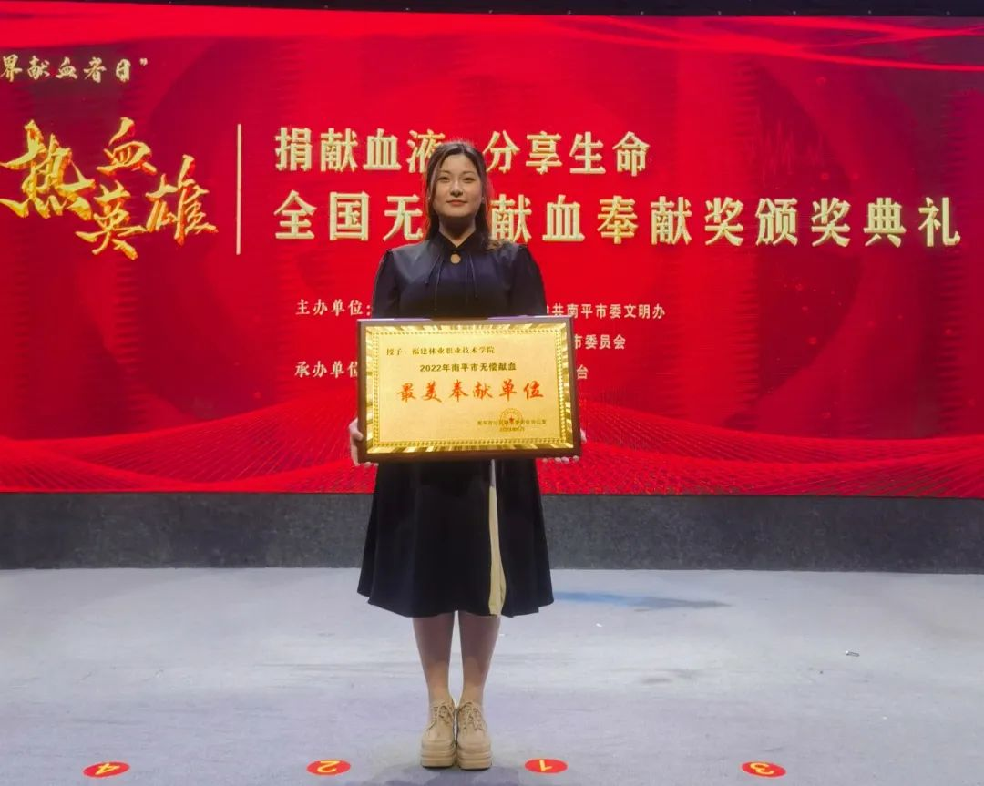 为深入学习宣传贯彻党的二十大精神,扎实推进“争优 争先 争效”行动,弘扬献血救人的无私奉献精神,践行社会主义核心价值观,助力文明城市创建。6月13日上午,在第二十个“世界献血者日”来临之际,由南平市卫生健康委员会、中共南平市委文明办、南平市红十字会、共青团南平市委员会主办,南平市中心血站、南平市广播电视台承办的南平市第二十个“世界献血者日”无偿献血宣传暨2020-2021年度全国无偿献血奉献奖颁奖典礼在南平市大剧院举行。我院荣获“2022年度南平市无偿献血最美奉献单位”!