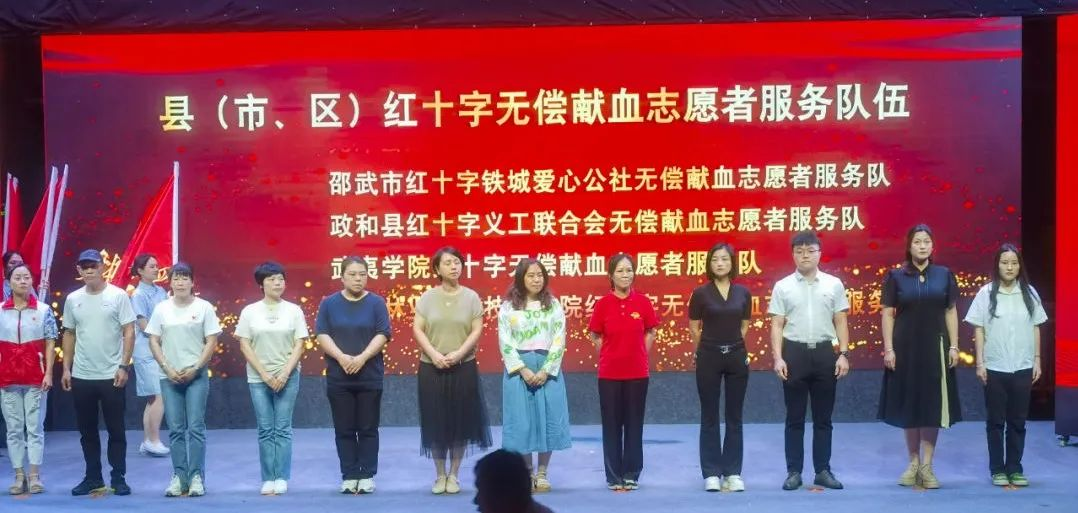 本次颁奖典礼共表彰了24名“全国无偿献血奉献奖终身荣誉奖”、2所“全国无偿献血促进单位奖”、10名“全国无偿献血奉献奖金奖”和14所“南平市无偿献血最美奉献单位”。现场还举办了授旗仪式,为我院及其余13支各县(市、区)红十字无偿献血志愿者服务队伍授旗。