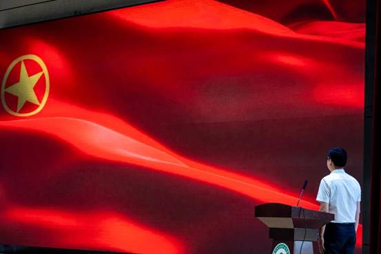 ▲全体师生起立齐唱国歌