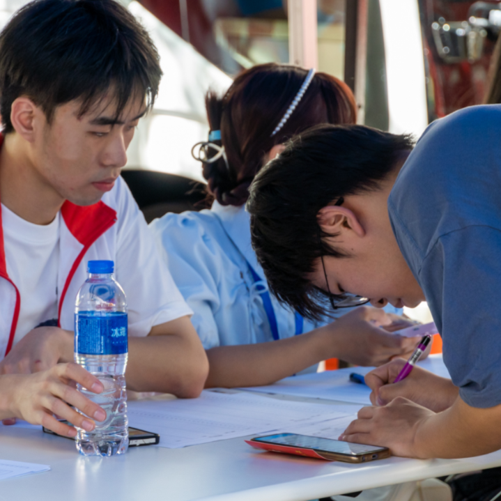 在活动现场,同学们认真填表,并通过测量血压、抽取血样等严格的流程,为献血做好准备。顺利通过预检的同学依次走上采血车,其中有多次参与献血的“老熟人”,也有首次尝试献血的“新面孔”。首次献血的同学难掩紧张情绪,现场医护人员对他们进行及时的疏导安慰,献完血后志愿者们再三叮嘱献血后在饮食、作息等方面的注意事项。