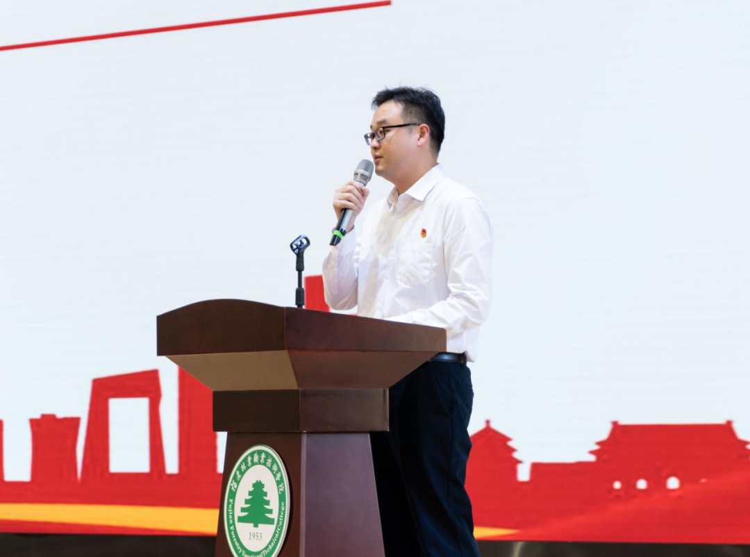 院团委副书记(主持工作)雷栩艺老师讲话,并对新团员提出希望与要求。他希望新团员们能够时刻牢记自己共青团员的身份,把个人的成长与成才融入到学院建设和发展的大局之中,与学院齐发展、共进步,争做新时代的青年先锋,以强烈的责任心和庄严的使命感为学院的发展贡献青春力量,展现出青年人的精神面貌,肩负起青年人的时代重任,让青春焕发出更加绚丽的风采。