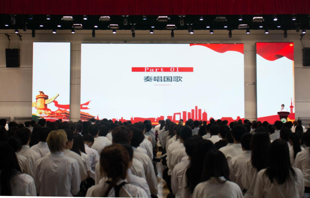 全体起立,奏(唱)国歌。在庄严的国歌声中,仪式正式开始,全体师生面向国旗,齐唱国歌。