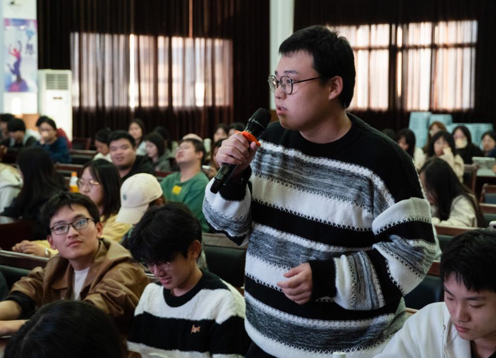 活动伊始,张慧老师从“什么是非遗?你所知道的非遗有什么?"两个问题作为引导语,不仅快速充分地调动了学生积极性,还十分自然引入本次讲座主题,让同学们在积极回答问题,分享自己家乡的非遗的同时对非遗产生了浓厚的兴趣,也为后续学生更加深入了解“非遗”做好铺垫。随后张慧老师向同学们讲述了华阴老腔、四平戏和南平各地传统小吃等非遗文化相关课程,帮助同学们具体地了解到了更多的南平当地非遗文化。