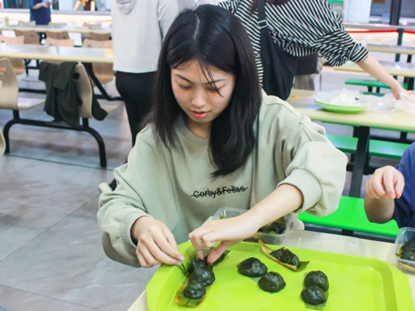 清明时节雨纷纷,飘香青团惹人馋。在刚刚结束的活动里,同学们做青团,吃润饼。品尝春天的清新,体会春日的美好。活动伊始,主持人介绍完活动内容及流程后,同学们立马投入到美食的制作当中。