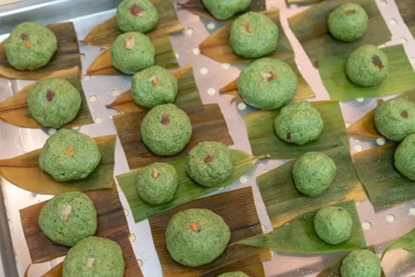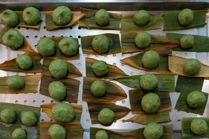伴随着脑洞大开的想象力,原本圆嘟嘟的青团,摇身一变成了各种各样的形状。有笑脸,有星星,有熊脸……一个个都生动有趣,充满活力。