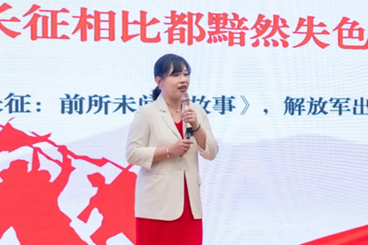 来自三明医学科技职业学院的唐琍琍以“一代人有一代人的长征”为切入点,用丰富的中国故事、福建故事和三明故事勉励强国复兴一代的青年涵养“自找苦吃”的精气神,砥砺奋进,向上向善。