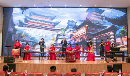 幸逢盛世,花好月圆。主题宣讲活动在学院学生民乐团演奏的乐曲《花好月圆》中拉开序幕。