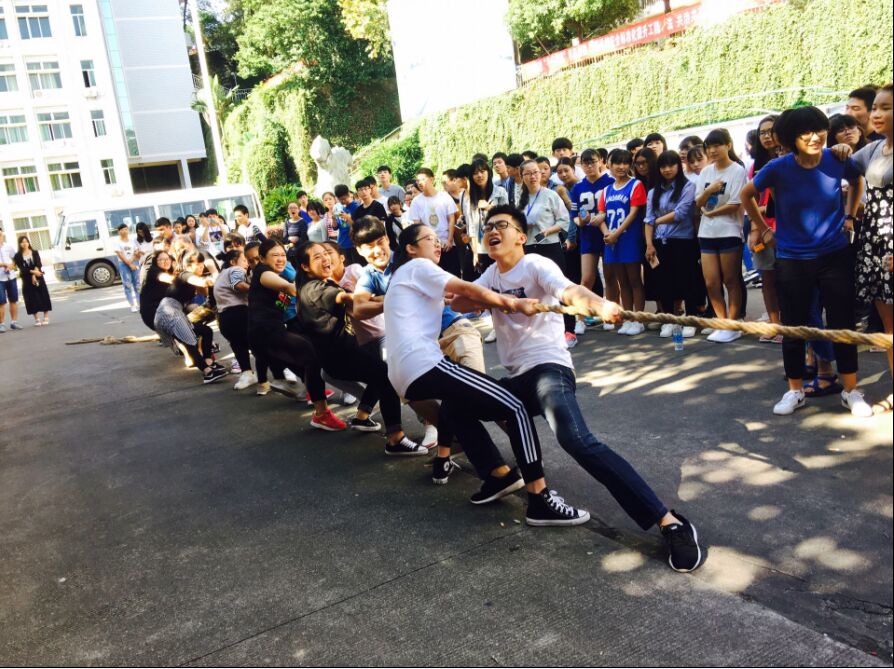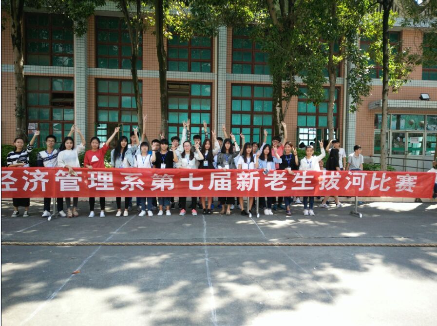 为进一步贯彻落实团中央“走下网络、走出宿舍、走向操场”大学生主题群众性课外体育锻炼系列活动要求,引导学生乐于学习、注重运动、健康生活,2016年10月16日,经济管理系第七届新老生拔河比赛在天麟校区礼堂前广场如期开展,经济管理系2015级和2016级共23个班级学生参加了此次比赛。
