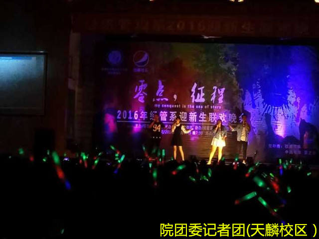 为迎接2016级新生的到来,展现我院学子风采,10月25日晚7点30分,由我院经济管理系团总支主办的以“零点-征程”为主题的新生晚会在天麟礼堂隆重举行。