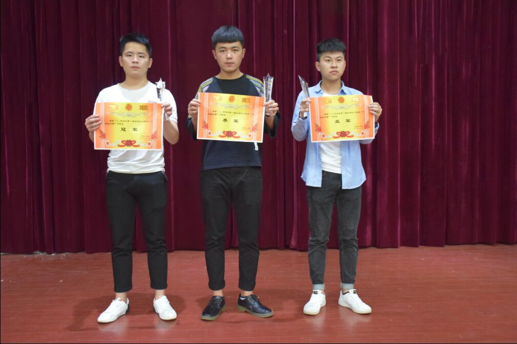 选手们精彩的演出,让我们感受到他们的才华,感受到他们飞扬的青春!经过两个多小时的激烈角逐,汽修1402班卓德中荣膺决赛冠军;亚军、季军分别由计算机1301班林邦诚、汽修1402班韦起良获得。竞争是激烈的,但比赛的过程却是快乐的,每位选手都站上了这个展现自我的大舞台,呈现了最完美的自己。