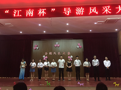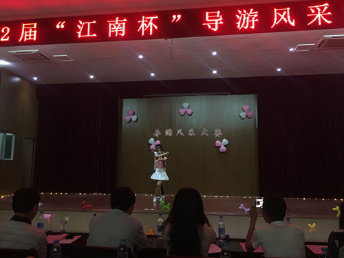 随后导游风采大赛的参赛选手们按照赛程开始了精彩的角逐。在比赛过程中参赛选手们发挥各自所长,热情澎湃的景点介绍赢得了在场师生的阵阵鼓掌,尤其是各具特色的才艺展示,热辣的伦巴、曼妙的舞蹈、唯美的英文诗朗诵、激烈的调酒表演等更是将现场气氛推向了高潮。最后喜旅游1610班的陈梅同学荣获本次大赛“金牌导游“”称号,旅游1611班的牟亚玲同学、傅伊萌同学分布获得银牌和铜牌导游殊荣,赖晓慧、李凌双、钱梦圆、王子娟、汪文涛、叶永梁等同学获得“优秀导游”称号。
