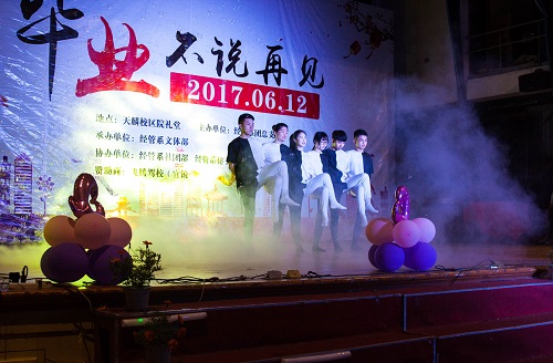 梦想起航,青春散场,六月的天麟处处弥漫着离别的气息。2017年6月12日晚上,经济管理系在学院天麟校区礼堂举行了“毕业,不说再见”2017届毕业生欢送晚会。院党委书记徐志荣、院党委副书记陈洪尧、院纪委书记章志勇、院党办副主任邹小燕以及经济管理系全体师生共同观看了晚会。