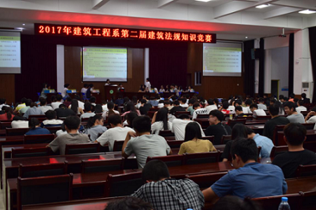 为进一步提高和巩固学生学习掌握建筑法规基础知识水平和业务能力,建筑工程系于2017年6月19日晚,在江南校区礼堂成功举办了“第二届‘建工杯’技能活动月”之建筑法规知识竞赛。