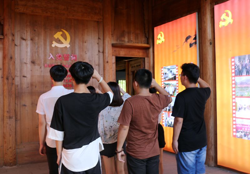 在参观结束后,所有成员在纪念馆的入党誓词下,大声宣誓,表达以廖书记精神为引领,不忘初心跟党走的决心。