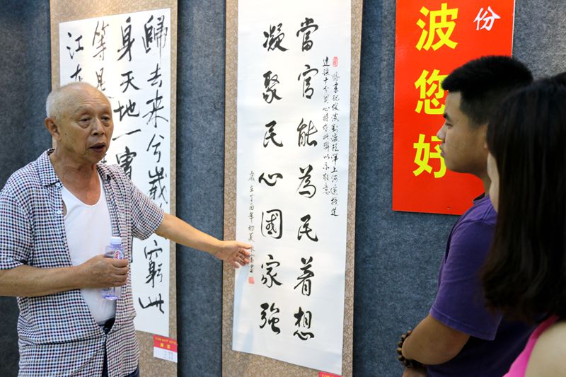 7月1日,正值中国共产党成立96周年纪念日,团队成员们带着满腔热情奔赴南平市政和县这个廖书记工作了四年多的地方。当日下午抵达政和县文化馆参观了“俊波您好”书法展,书法展共分为“时代楷模”、“俊波你好”、“平安情怀”、“文化馨香”四个部分,展出来自县内外的书法名家或书法爱好者精心创作的书法作品55幅。政和县书法家协会理事范永镇老先生全程为我们进行了讲解,一幅幅作品展示了对俊波精神的弘扬和礼赞,让我们更加深刻地理解政和人民对廖书记的爱戴和敬意。