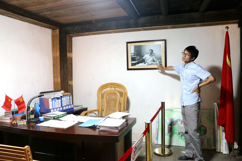 在石圳村廖俊波同志先进事迹纪念馆,成员们听杨斌委员介绍了廖书记对石圳村及政和县发展做出的巨大贡献。杨斌委员重点介绍了两个细节,一个是在廖书记殉职后,大家整理他的遗物,却一直找不到他荣获“全国优秀县委书记”与习近平总书记的合影,后在档案馆找到的,廖书记生前说:组织给力这么高的荣誉,除了更加努力工作,没有其他办法报答组织。另一个是在参观廖书记生前办公场所模拟现场时,杨斌委员指着墙上廖书记的照片说:“这是2013年,当时县委办公楼被评定为危房,不能办公了,要拆除,盖一栋新的办公楼。当时县委有一个30万的项目,开发区刚刚起步,需要资金进行建设,廖书记说不盖了,把钱省下来发展经济。当时这栋楼的17个单位就全部拆分开来,和别的单位合署办公。这是当时办公室要拆迁前留下的非常珍贵的影像资料。”杨斌委员还说,廖书记就像《人民的名义》里的易学习,非常苦干实干,所以政和人民非常感谢他,也非常想念他,他的精神一直激励着我们,包括政和县的干部。说到动情处,杨斌委员红了眼眶,在场的成员们也陷入对廖书记深深的怀念之中。