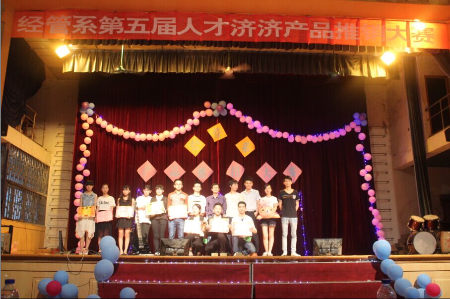 2015年5月28日,经济管理系第五届“人才济济”产品推销大赛在学院天麟校区礼堂圆满落幕。经济管理系主任蔡敏老师、党总支副书记俞雄辉老师、系副主任林文胜老师、相关专业教师、2014级新生及辅导员近600人到场观看比赛。