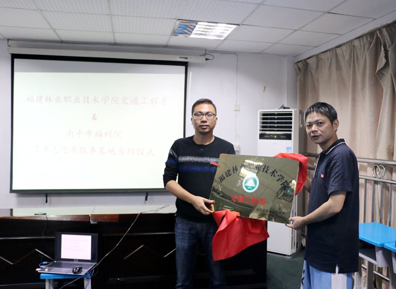 10月17日下午,交通工程系与南平市福利院共建“青年志愿者服务基地”签约暨揭牌仪式在南平市福利院举行。南平市福利院院长梁瑞辉,福建林业职业技术学院交通工程系主任孙华、系党总支副书记徐洪、系团总支干事陆晓莉,以及系两委会学生干部代表参加仪式。