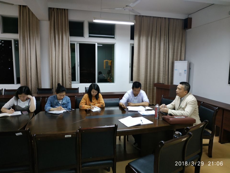 2018年3月29日晚20:00点,艺术设计系学工组召开系部辅导员会议,传达了学院学生管理、辅导员工作会议精神,根据学院工作思路和要求,全面、详细传达和部署了新学期各项学生管理工作。艺术设计系党总支书记、主任、学工组组长成榕主持会议,学生科科长杨自绍及艺术设计系全体辅导员参会。