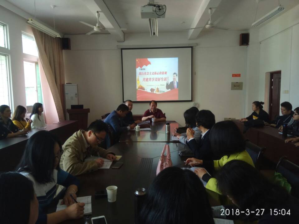 3月27日下午15:00,院党委工作部部长郭先根应艺术设计系邀请,在天麟校区综合教学楼704室为艺术设计系全体教职员工带来了一场“践行社会主义核心价值观,共建共享美好生活”的专题讲座。本次讲座由艺术设计系党总支书记、主任成榕主持。