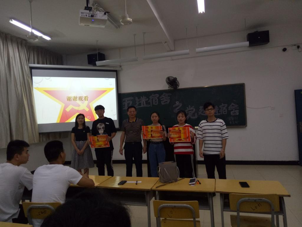 党建进宿舍工作的务实推进,有效拓展了思想政治教育阵地,带动了宿舍文化建设,营造出积极、健康、和谐、向上的文化氛围,有力推进了优良学风校风的形成。同时,增强了学生的责任意识和服务意识,发挥了自我教育、自我管理和自我服务的作用。希望今后同学们继续践行党的十九大精神,不忘初心,筑梦前行。
