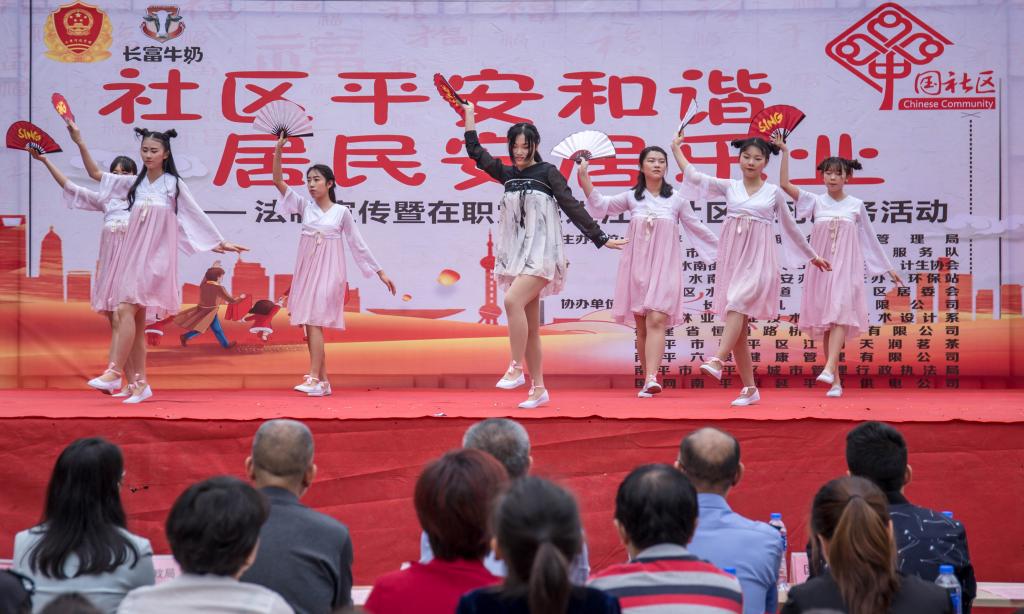 艺术设计系的党员干部和优秀学生代表利用精心绘制的海报和彩页作品向社区群众开展党的十九大精神宣传,同时开展了文艺进社区演出活动。由艺术设计系专任教师、学生代表组成的文艺演出队伍带来的精彩节目吸引了社区群众的目光,演出现场欢声雷动、气氛热烈,师生们精心准备的文艺节目赢得了社区群众们的阵阵掌声。整场演出既深入宣传了党的十九大精神,弘扬了地方传统文化,体现了艺术设计系师生的良好精神面貌,又丰富活跃了社区居民文化生活,传达了群众建设和谐美好家园的心声。