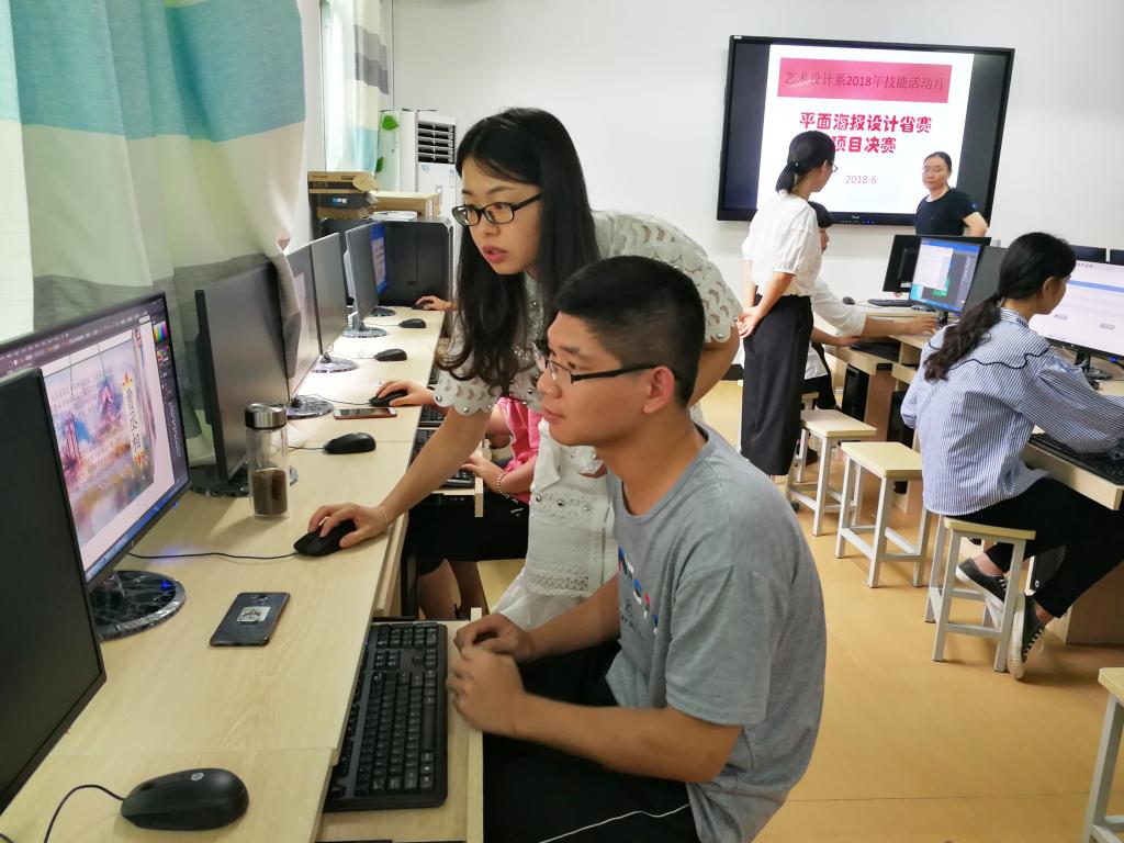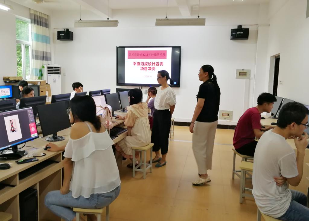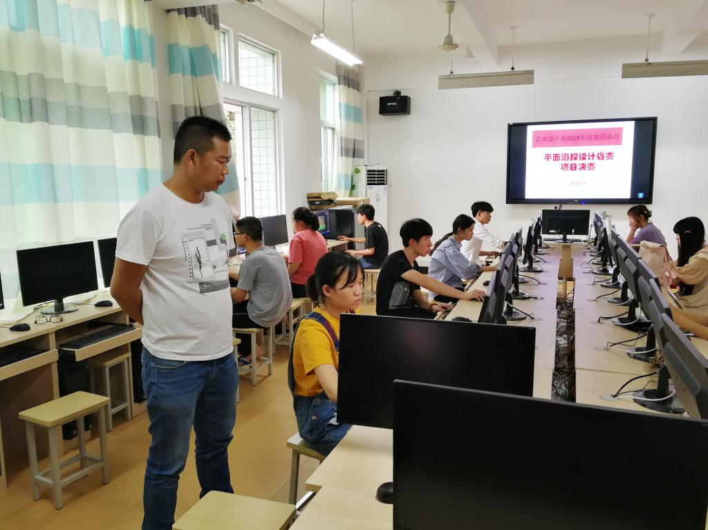 2018年6月4日,在综合楼607协同创新中心实训室进行了一场别开生面的技能竞赛,作为艺术设计系2018年技能活动月系列活动之一,此次平面海报设计项目经过为期一个多月的初赛选拔,最终来自广告设计与制作专业的30名同学突出重围,参加本项目决赛。