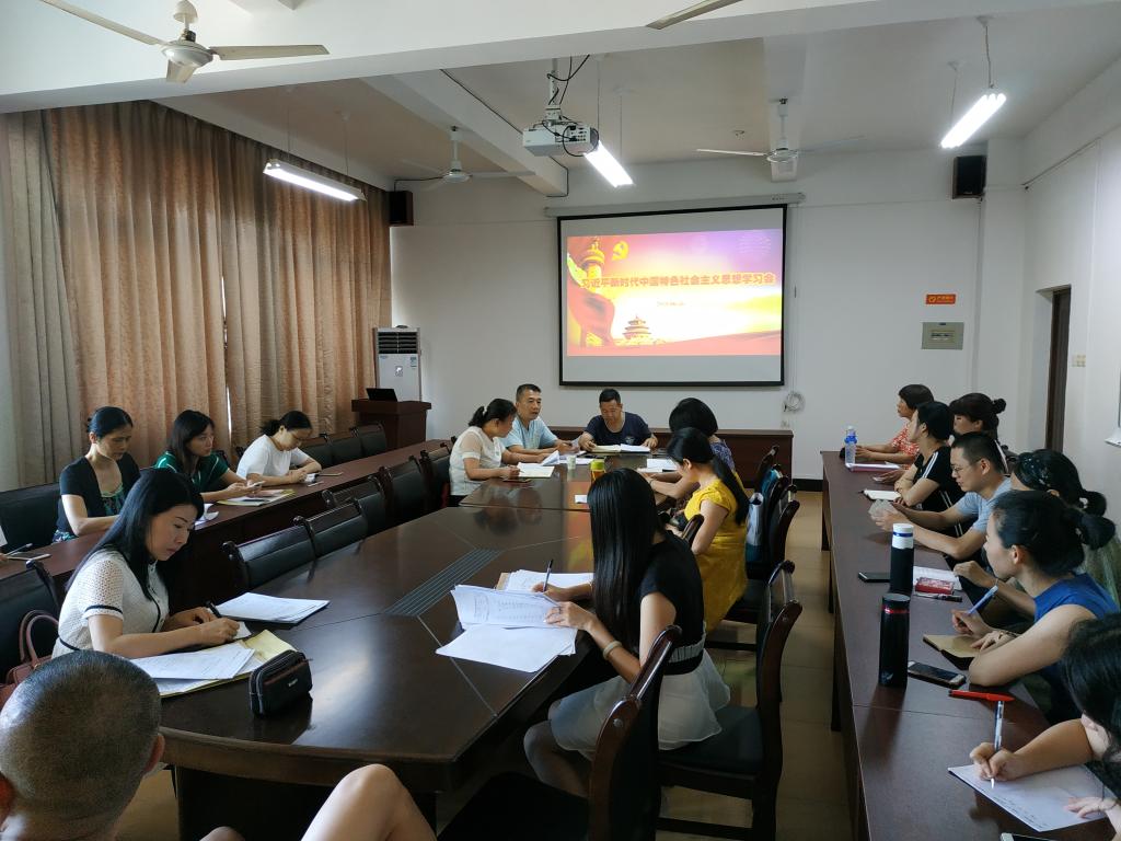 为深入学习宣传贯彻习近平新时代中国特色社会主义思想和党的十九大精神,动员和激励全系教职员工继承发扬党的优良传统和作风,更好地发挥党员先锋模范作用,2018年6月26日15:00艺术设计系邀请罗立仪副院长在我院天麟校区综合教学楼704室召开习近平新时代中国特色社会主义思想学习会暨2018届毕业生工作安排及期末工作部署会。人事处处长黄丽霞出席会议,艺术设计系全体教职工到场聆听学习。会议由艺术设计系党总支书记、系主任成榕主持。