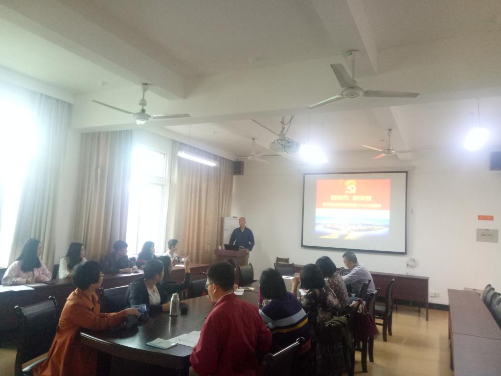 2018年10月16日下午,艺术设计系在系会议室开展了“新时代、新征程——党的十九大精神宣讲会”活动,活动由思政部主任洪福兴主讲。洪主任围绕“我国发展的历史方位”“新时代的历史和现实依据”“新时代的内涵”“新时代新征程”等4个方面的问题展开了讲座。洪主任的讲座既有对概念的准确把握,体现了研讨问题的科学性,又有严密的逻辑性和丰富的多样性结合,体现了历史唯物主义的立场和视角,博得了与会党员的阵阵掌声。