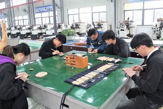 自动化工程系特聘中国传统工艺美术大师、福建省根雕艺术大师郑世阳来为手工雕刻老师,教授木材加工技术相关课程,将这项传统手工文化继续发扬光大。