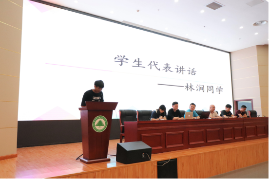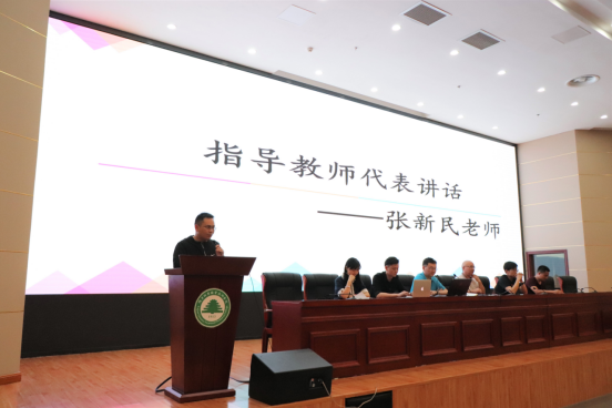 随后指导教师代表张新民老师以及学生代表林涧同学分别上台讲话。张新民老师在发言中指出随着社会的不断发展和进步,具备较强动手能力的技能型人才越来越受社会的欢迎,需求量日益增大,技能竞赛是培养和发现技能人才的有效途径之一,希望同学们能够认真参加赛前培训,积极备赛,努力在比赛中取得好成绩。
