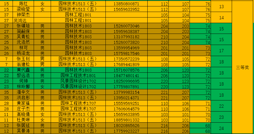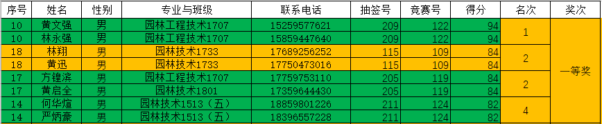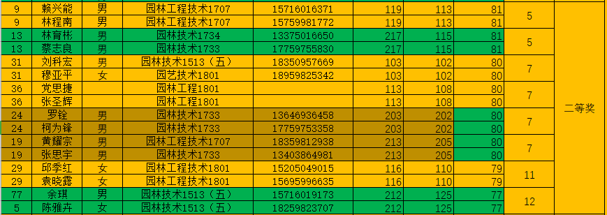 这次比赛共有4组学子获得了一等奖的好成绩,8组学子取得了二等奖,12组学子取得三等奖。分工明确,配合默契,沉着应赛,规范操作的他们取得了良好的成绩,此次园林景观施工比赛圆满结束。