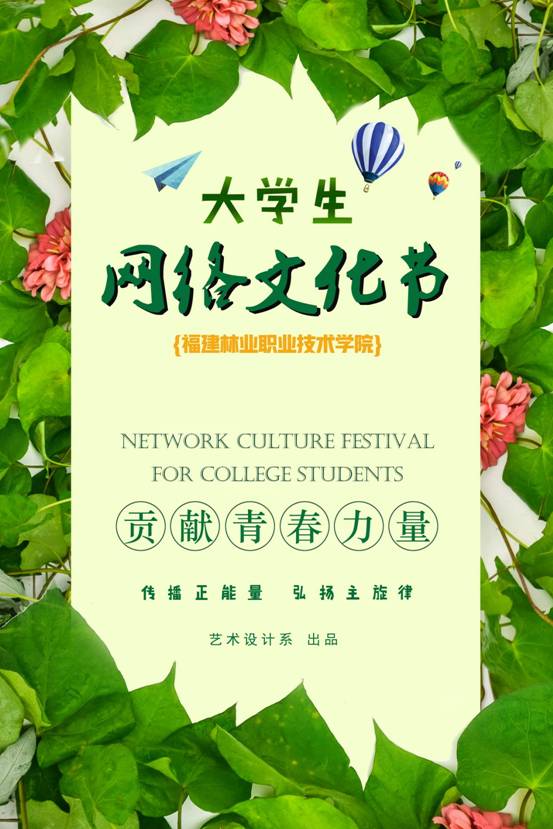 为深入学习贯彻习近平新时代中国特色社会主义思想和党的十九大精神,切实将全国网信工作会议和全国、全省高校思想政治工作会议精神贯彻落实引向深入,进一步丰富网络文化内容供给,让积极健康的文化活动占领网络思想阵地,营造良好的网络文化氛围,艺术设计系举办以“传播正能量、弘扬主旋律、争做校园好网民”为主题的大学网络文化节活动。