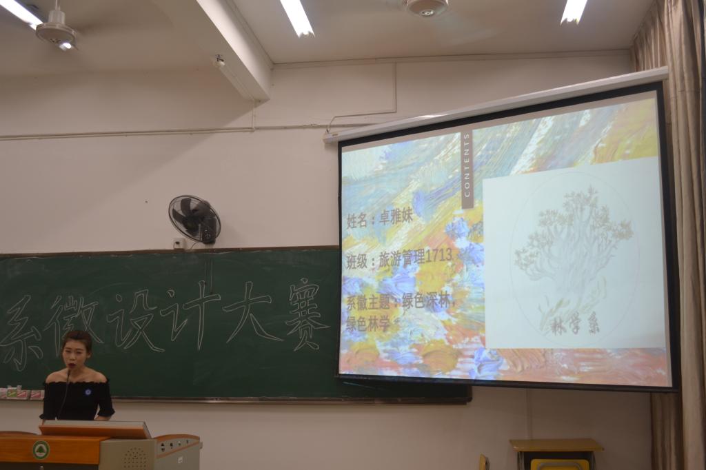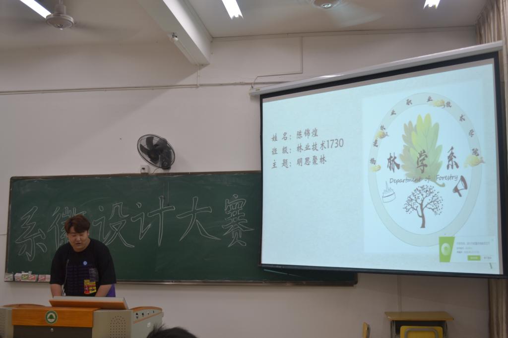 选手们逐一上台,运用精美的演讲配合上流畅的ppt将自己设计作品的理念和细节完美的表现出来。作品的百花齐放更令在场的观众大饱眼福,选手们的系徽作品外观新颖,结构新奇,理念突出,将林学系的特点完美的展现出来。