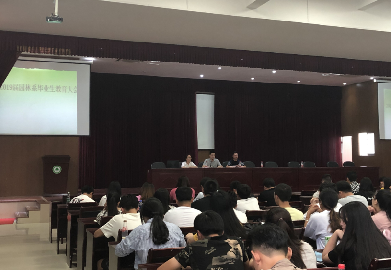 6月18日上午,园林系2019届毕业生教育大会在江南校区礼堂顺利召开。园林系教学管理科科长陈剑峰老师、学生科科长吴旻老师、辅导员马艳红老师及2019届全体毕业生共同参加了此次大会。大会由陈剑峰老师主持。