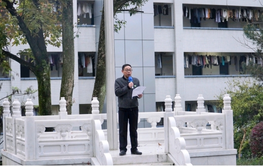 升旗仪式结束之后,艺术传媒系党总支书记陈政发表了主题为《一年之计在于春》的国旗下讲话。