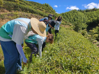品质玉山,茶兴百业。实践队走进玉山镇岭口村,先后考察当地制茶企业以及翠冠梨种植基地。在凌云生态茶厂负责人带领下,队员们徒步高山生态茶园,得知玉山特殊自然条件造就高山生态茶卓越品质,茶山养护需格外注重生态环保。队员们亲自拔除茶树间杂草并弄碎掩埋,化作有机肥料,体验养护环节。随后,观摩体验制茶车间萎凋、晾青、做青、杀青等传统制茶工序;在霁语茶业手工茶审评室,感受手工茶与机器制茶在香味、口感等方面的不同特点。