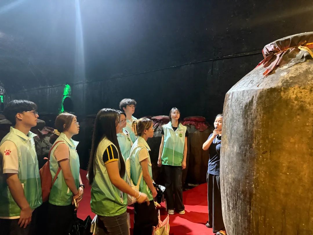 实践队来到双龙戏珠酒业的东南酱酒文化馆,在展馆讲解员引领下解码中国白酒酿造史、建瓯酒文化脉络与企业品牌建设密码。天然山洞内泥底石窖储酒的壮观场景,让队员们直观感受酱酒 “时光陈酿” 的魅力。