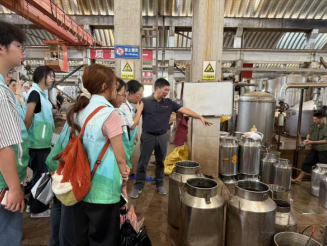随后在双龙戏珠酒业副总经理吴小如的带领下,实践队深入桐源生产基地酿酒车间,现场观摩酱酒发酵、酿造全流程,沉浸式理解 “12987 坤沙工艺”—从端午制曲到九次蒸煮的匠心细节。