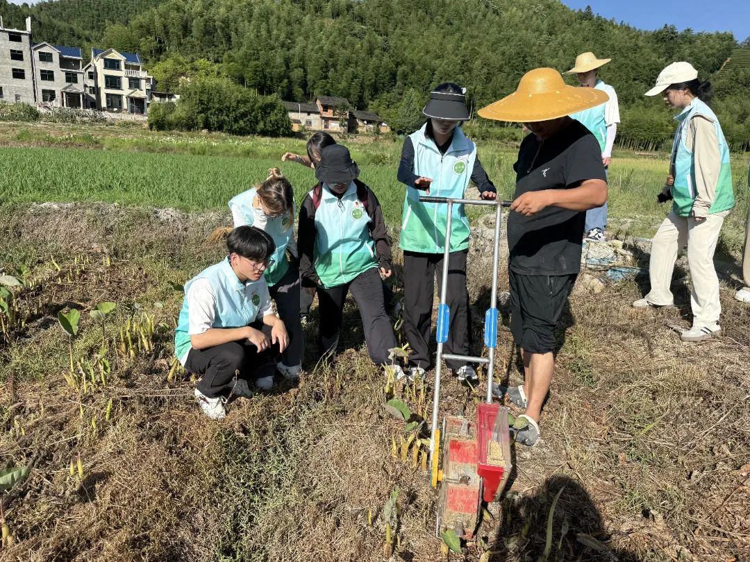 此外,队员们还走进“田间课堂”,体验黄豆选种、播种、覆土等实操技能。园艺专业的叶同学结合土壤观测、气候分析等理论知识,向农户讲解科学种植原理,她表示:“来到田间地头,不仅提高了动手能力,更让理论知识变得鲜活起来!”从文化研学到农技落地,多维培训正推动青年智慧转化为乡村振兴的实干动能。