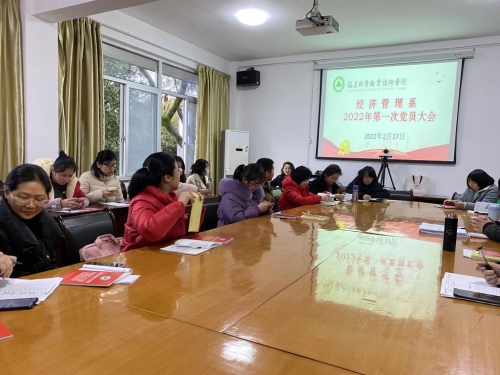 2月17日,经济管理系党总支组织全系党员教师召开了2022年第一次党员大会,会议由党总支书记谢福荣主持。会上,谢书记首先对经济管理系党总支上一年度工作进行了总结,随后对总支及各支部新学期党建工作进行的重点部署。