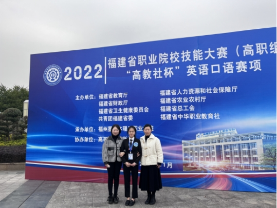 近日,2022年福建省职业院校技能大赛(高职组)“高教社杯”英语口语赛项在福州墨尔本理工职业学院举办。经过两天紧张激烈的角逐,福建林业职业技术学院艺术传媒系丁磊老师指导的商务英语专业大三学生蔡凯吟获一等奖,赵义莲老师指导的商务英语专业大一学生林欣瑶获三等奖。