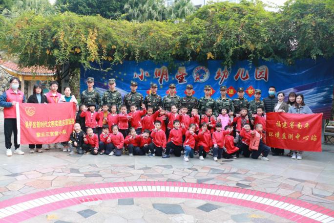 本网讯 学校与社会的共同协作是现代教育的重要方式,能发挥学校在“三结合”教育体系中的突出作用,我院作为山区高校,历来注重服务地方经济发展,在与驻地社区合作育人的过程中,通过组织学生参加各种志愿服务和社会实践活动,在具体实践中加强对学生的教育。为推动实践育人落实落地,服务驻地社区共建,11月23日下午,我院交通工程系联合南平环境检测中心、紫云街道三官堂社区、小明星幼儿园开展“童年遇见迷彩”军事体验活动。交通工程系师生代表、 福建省南平环境监测中心站吴智敏副站长和工作人员、紫云街道三官堂社区陈燕书记和宁峰主任、小明星幼儿园许顺爱园长、部分学生家长和小朋友们参加本次活动。