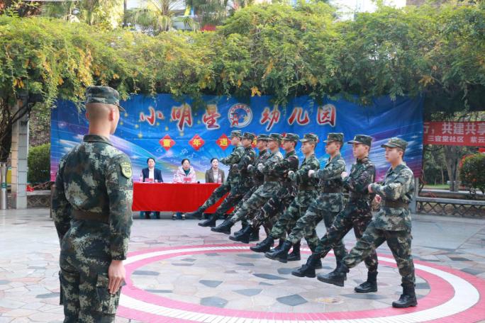南平环境监测中心站领导吴智敏在致词中指出,少年志则国志,少年强则国强!孩子是国家的未来,也是国家的希望!此次活动非常有意义,能让孩子们从小了解中国的强国强军梦,让幼儿萌发热爱祖国的情感;培养孩子积极进取、勇敢坚强的优良品质,给孩子的身心健康成长奠定了良好基础。三官堂社区陈燕书记说:少年志则国志,少年强则国强!相信这次军事会操一定会成为孩子们成长历程中一段宝贵的记忆!许园长说:林职院交通系联合我园举办“童年遇见迷彩”军事体验表演,是希望小明星幼儿园的每个小朋友能通过这种方式收获:自律、自信、坚强、勇敢的意志品质,并能将之延续到今后的成长历程去。